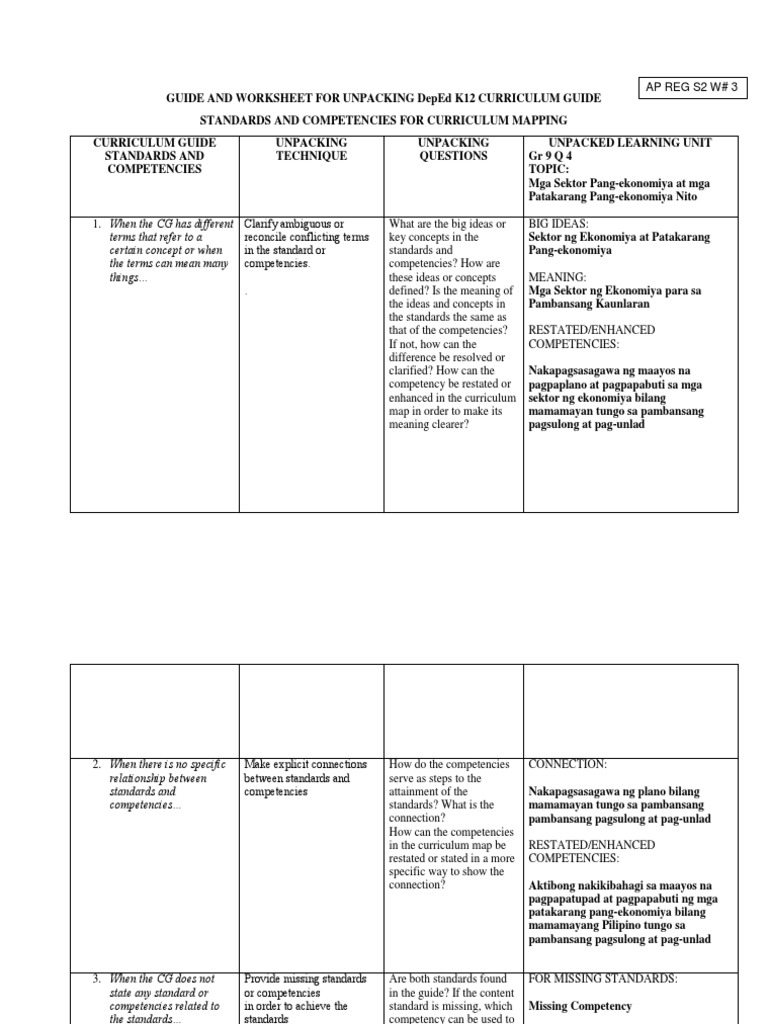 Unpack Standards Template Worksheets Teaching Resources Tpt