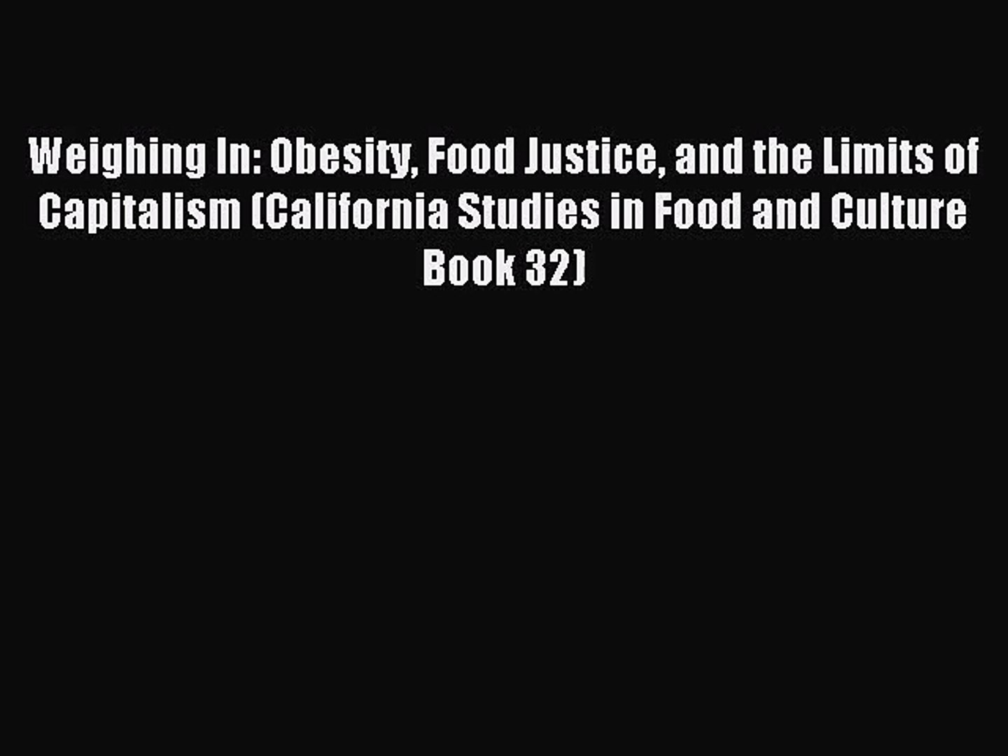 Weighing In Obesity Food Justice And The Limits Of Capitalism Pdf